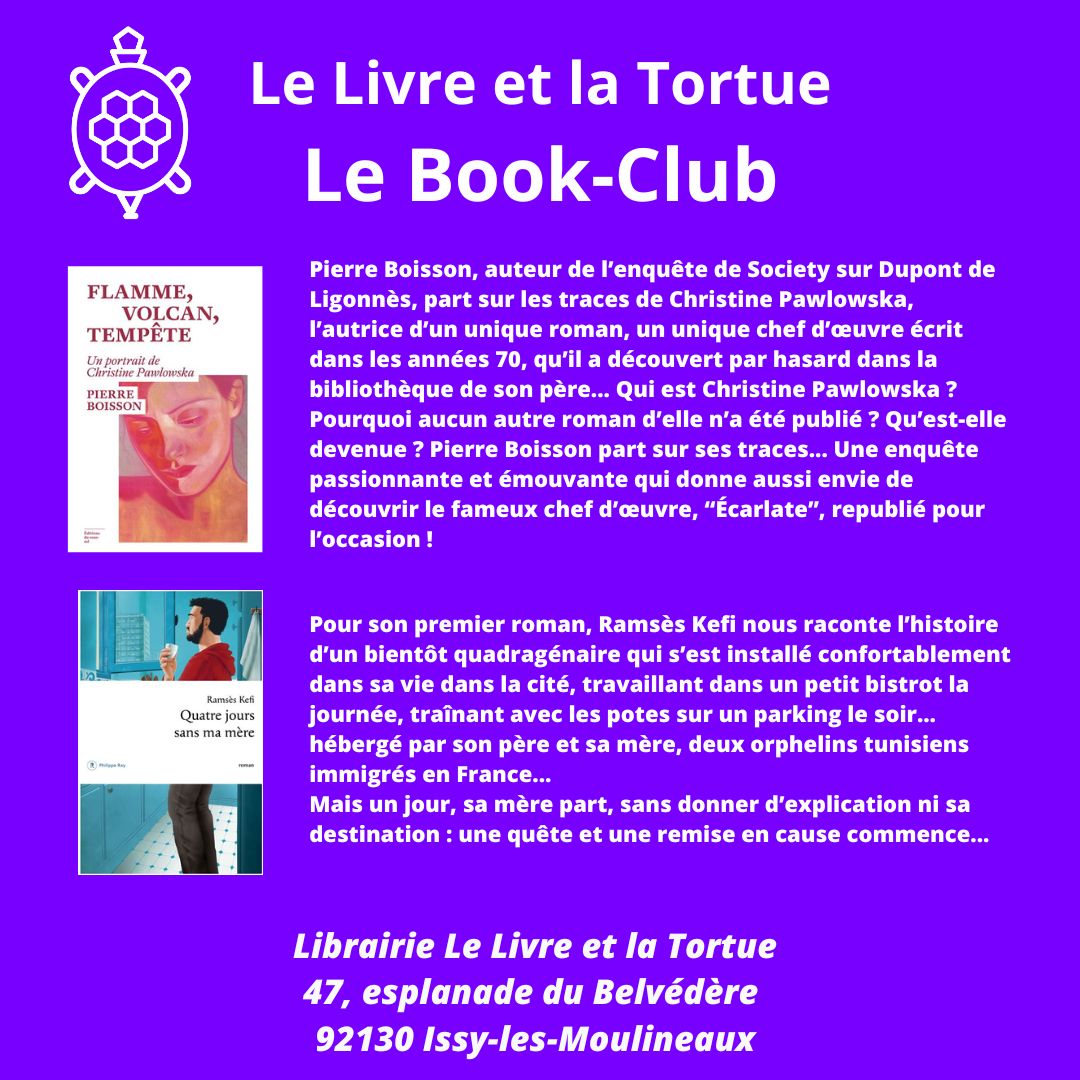 Marie et Olivier sont super angoissés de savoir ce que penseront les membres du book-club de la précédente sélection (présentée ci-dessus) ! Vont-ils être rassurés ou au contraire mis au pilori ?… Et quelle sera la prochaine sélection ?!… Pour le savoir, rendez-vous le mardi 18 novembre à 19h pour une nouvelle séance du book-club !