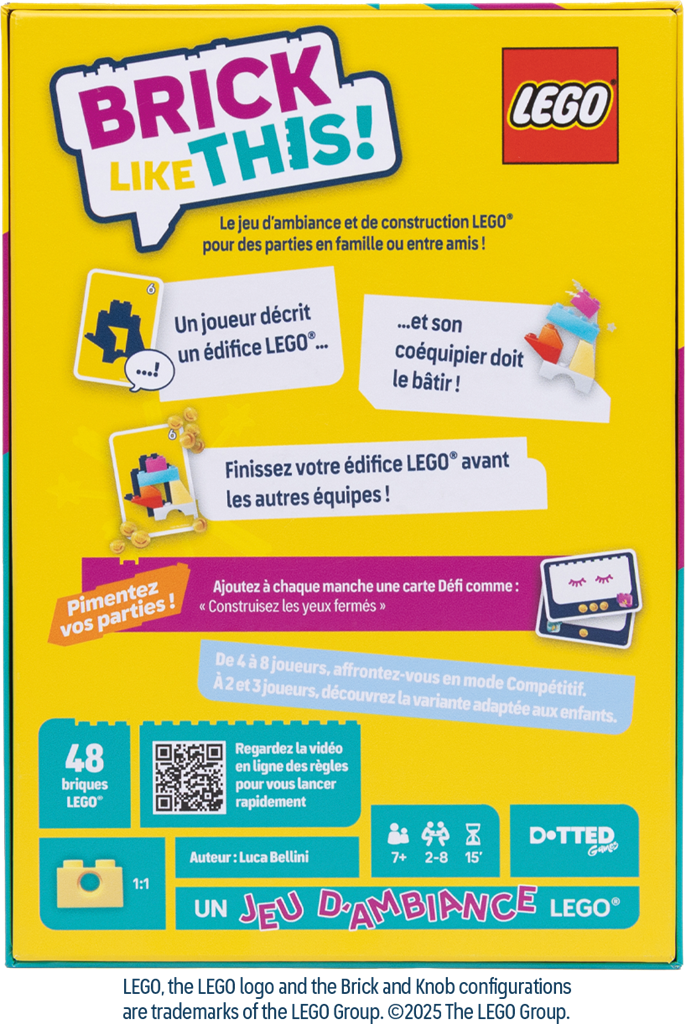 Dans le jeu Brick Like This !, les joueurs forment des équipes : l’un décrit une construction LEGO, l’autre doit la reproduire le plus fidèlement possible… sans la voir !