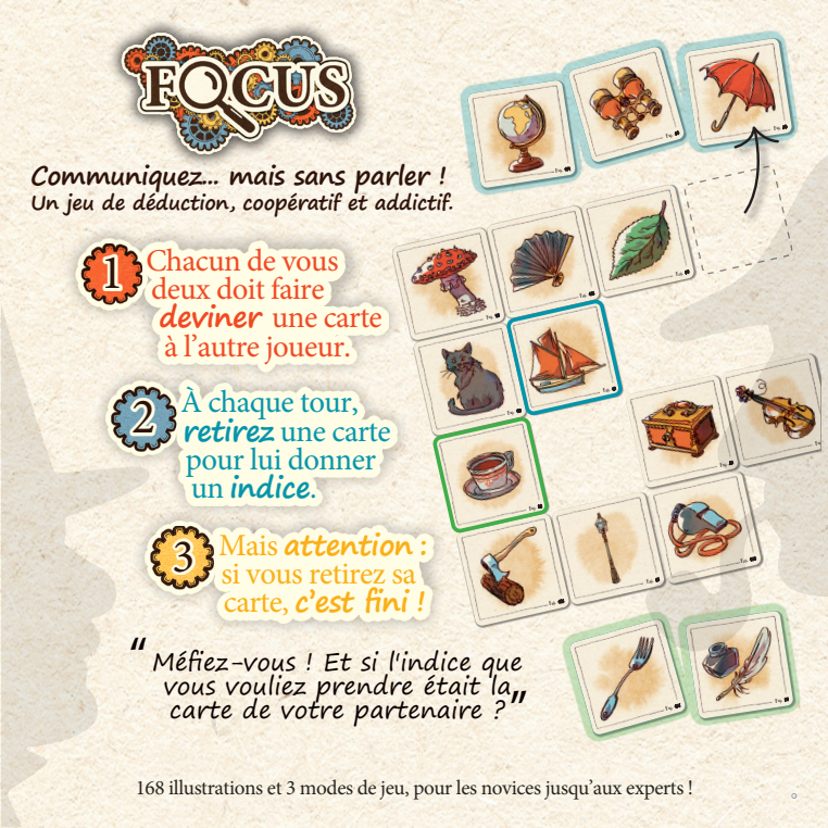 Focus est un jeu de réflexion et d’association d’idée pour deux joueurs.