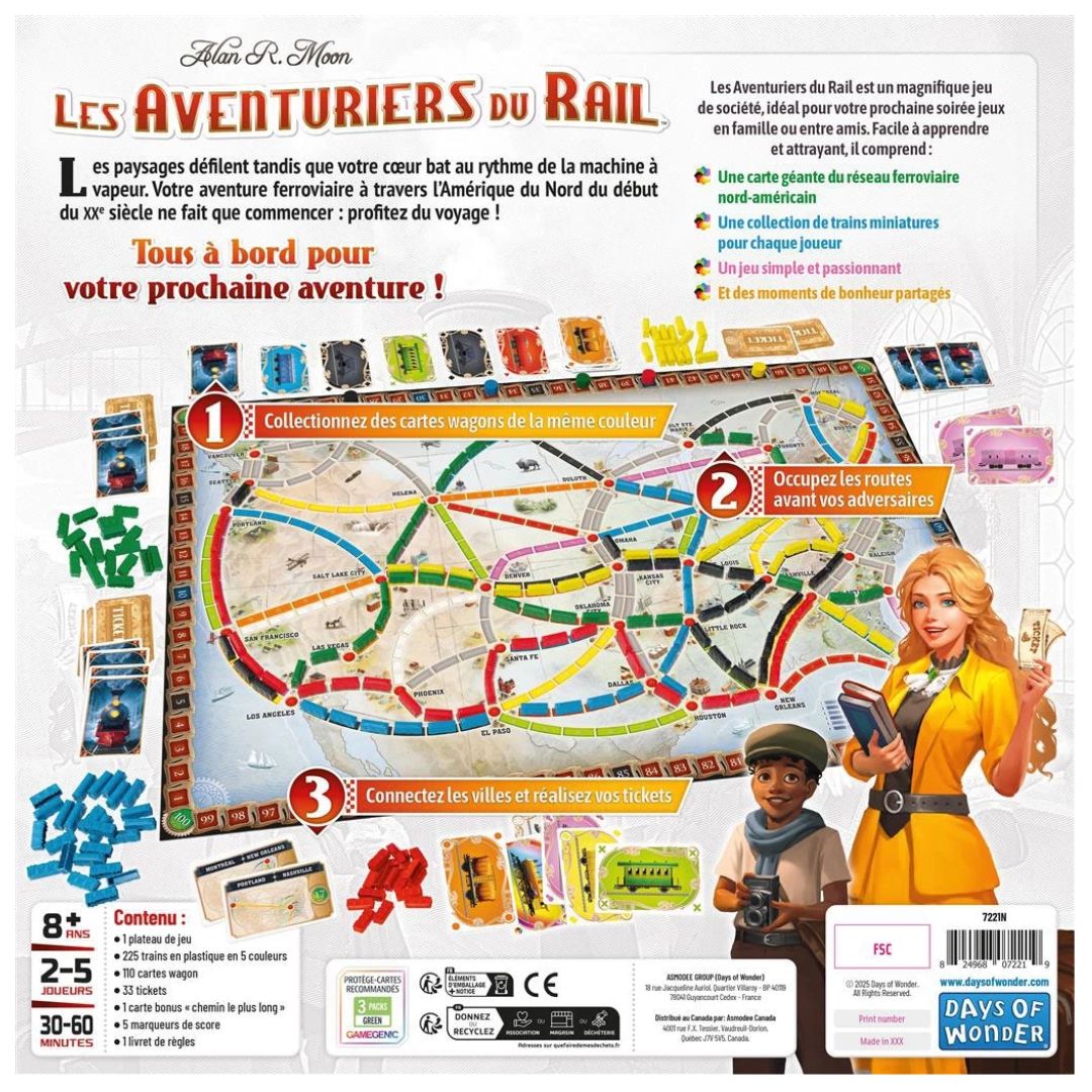 Dans ce jeu de société, vous collectionnez des wagons pour prendre le contrôle de lignes de chemins de fer reliant les différentes villes des Etats-Unis. Plus longues seront vos routes, plus grand sera le nombre de points gagnés.