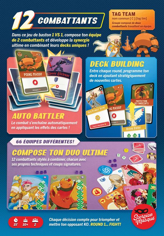 Dans le jeu Tag Team, choisissez deux combattants aux styles uniques et assemblez votre équipe idéale en combinant leurs decks asymétriques.